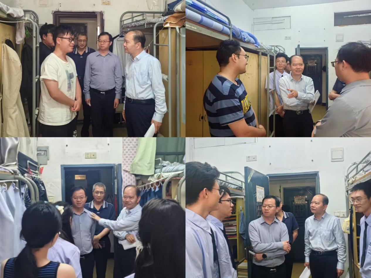 李春根一行先后来到蛟桥园北区学生宿舍8栋、15栋以及研究生公寓,察看了宿舍环境及配套设施,询问了学生的就业、课业、生活等情况,并叮嘱大家要互相关心,努力学习,强化安全意识,养成健康的生活习惯,共同创造一个温馨舒适的宿舍环境。