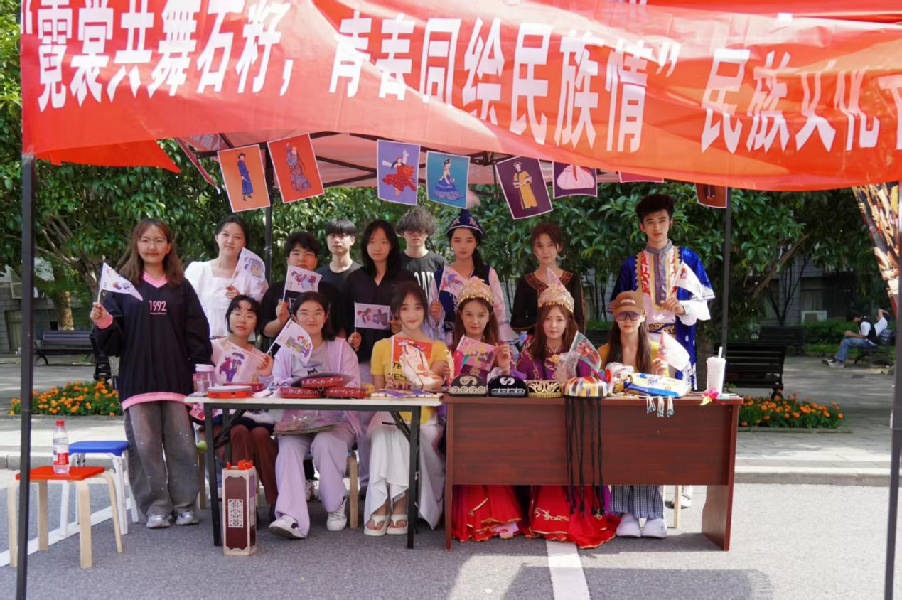 5月24日,由公共管理学院、金融学院与财政税务学院联合主办的"霓裳共舞石榴籽,青春同绘民族情"民族文化节在蛟桥园校区大礼堂广场举行。活动通过文化体验、互动游戏、美食品鉴三位一体模式,吸引逾500名师生参与,以青春视角诠释民族文化新内涵。