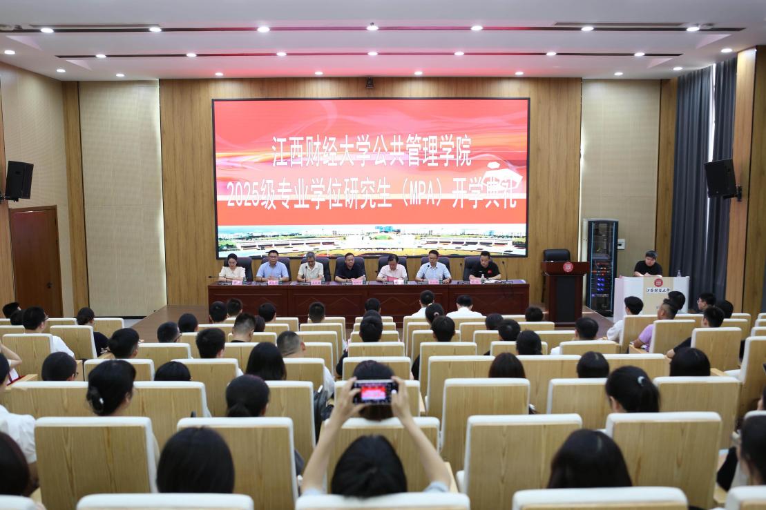2025年9月6日上午,公共管理学院在蛟桥园校区北区研究生院一楼报告厅举办2025级专业学位研究生(MPA)开学典礼。学院院长张仲芳、党委书记熊小刚、党委副书记左家盛、副院长涂小松,导师代表吕添贵、研究生办主任纪江、学工办主任尹琪及2025级全体MPA新生共130余人参加此次典礼。典礼由涂小松副院长主持。