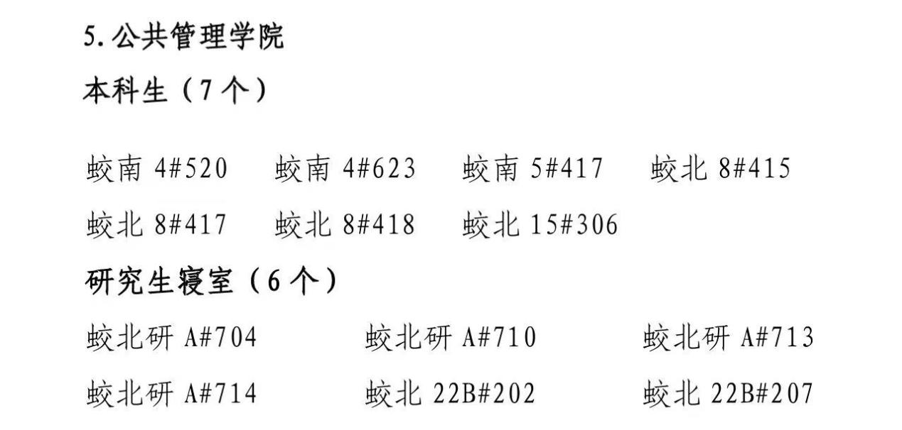 以下寝室凭借整洁雅致的内务环境、团结互助的同窗情谊、遵规守纪的自律意识和积极向上的精神风貌,共成功斩获7个本科生与6个研究生“映山红”文明寝室荣誉称号。其中本科生寝室(蛟南5#417)与研究生寝室(蛟北研A#710)获评“映山红”文明寝室标兵荣誉称号。