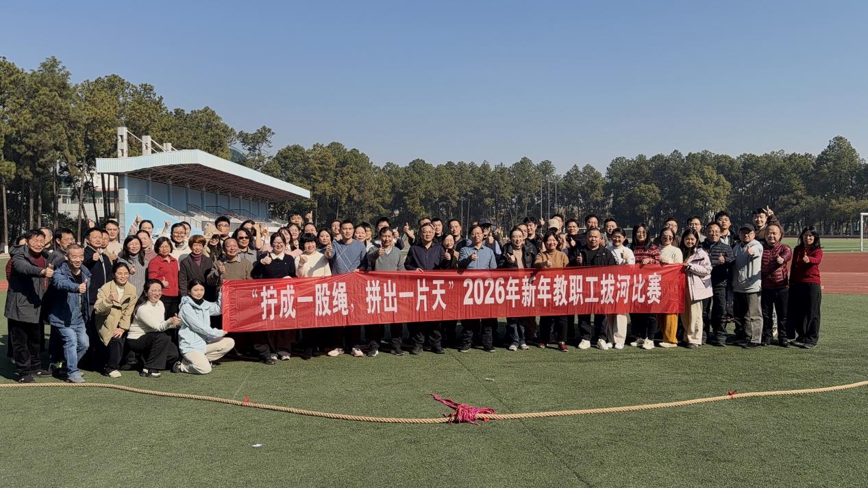 岁序更迭,万象更新。为迎接2026年新春,营造健康向上的校园文化氛围,1月14日上午,公共管理学院与财政税务学院在蛟桥园北区田径场联合举办“新年乐悠游”联谊活动。本次以“健步迎新程,拔河聚同心”为主题,通过轻松活泼的运动形式,促进两院教师交流互动,凝聚团队力量。